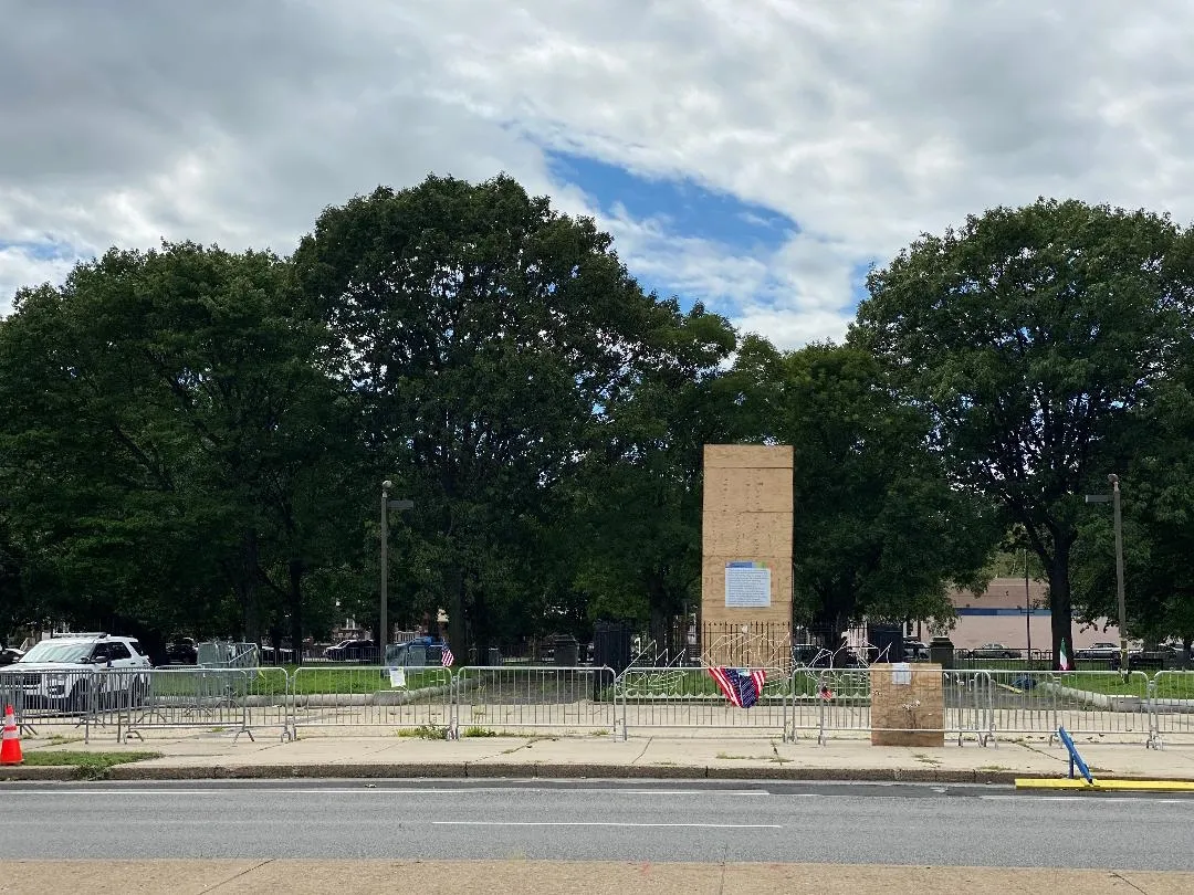 First, a grand plywood box was erected around the Columbus Monument, protecting the statue and buying time, while creating an instagrammable meme for the ages.