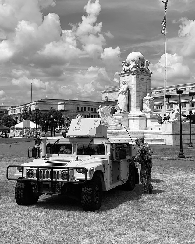 Washington DC, 14 August 2025. The colonial occupation forces of Donald J. Trump show off their hardware at the Columbus Monument in front of Union Station. (Photo Fritz Myer)