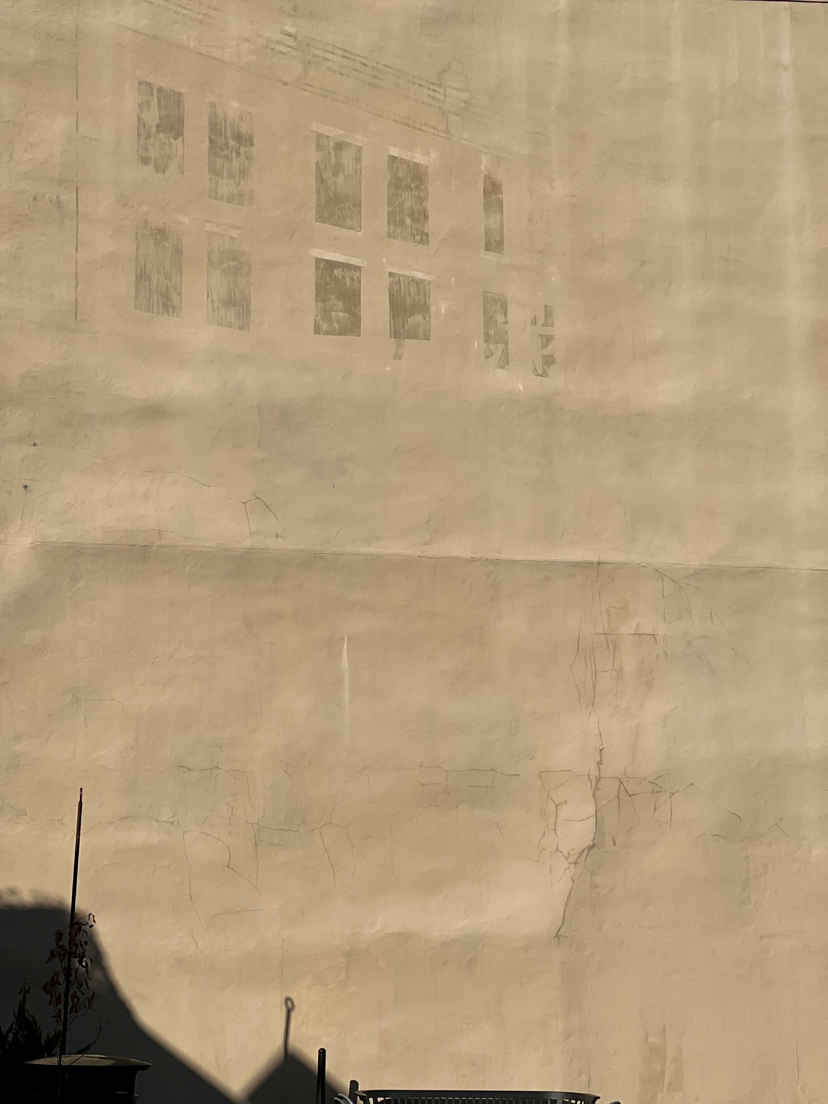 The concealed Rizzo mural on November 1, 2025. If it were a grave, we might describe it as "unquiet". (Photo Lyle Goldberg)