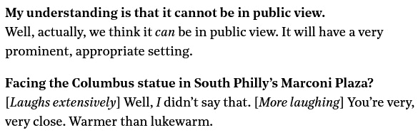 As for Columbus in Philadelphia, however, the Pennsylvania Commonwealth Court had some thoughts of their own —following up on their previous unboxing of the Marconi Plaza Monument on December 9, 2022.